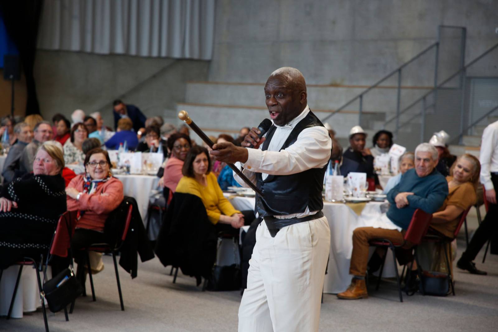 Nombreuses animations à l’occasion de ces 3 journées de banquets des retraités de la ville de Romainville : orchestre musiciens, animation musicale autour des tables avec notre super accordéoniste Corinne, danseuse revue Cabaret et claquesttiste.